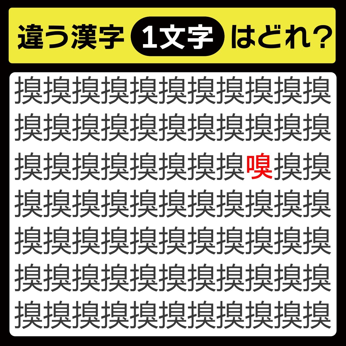 違う漢字は、上から3行目、右から3番目の文字でした!