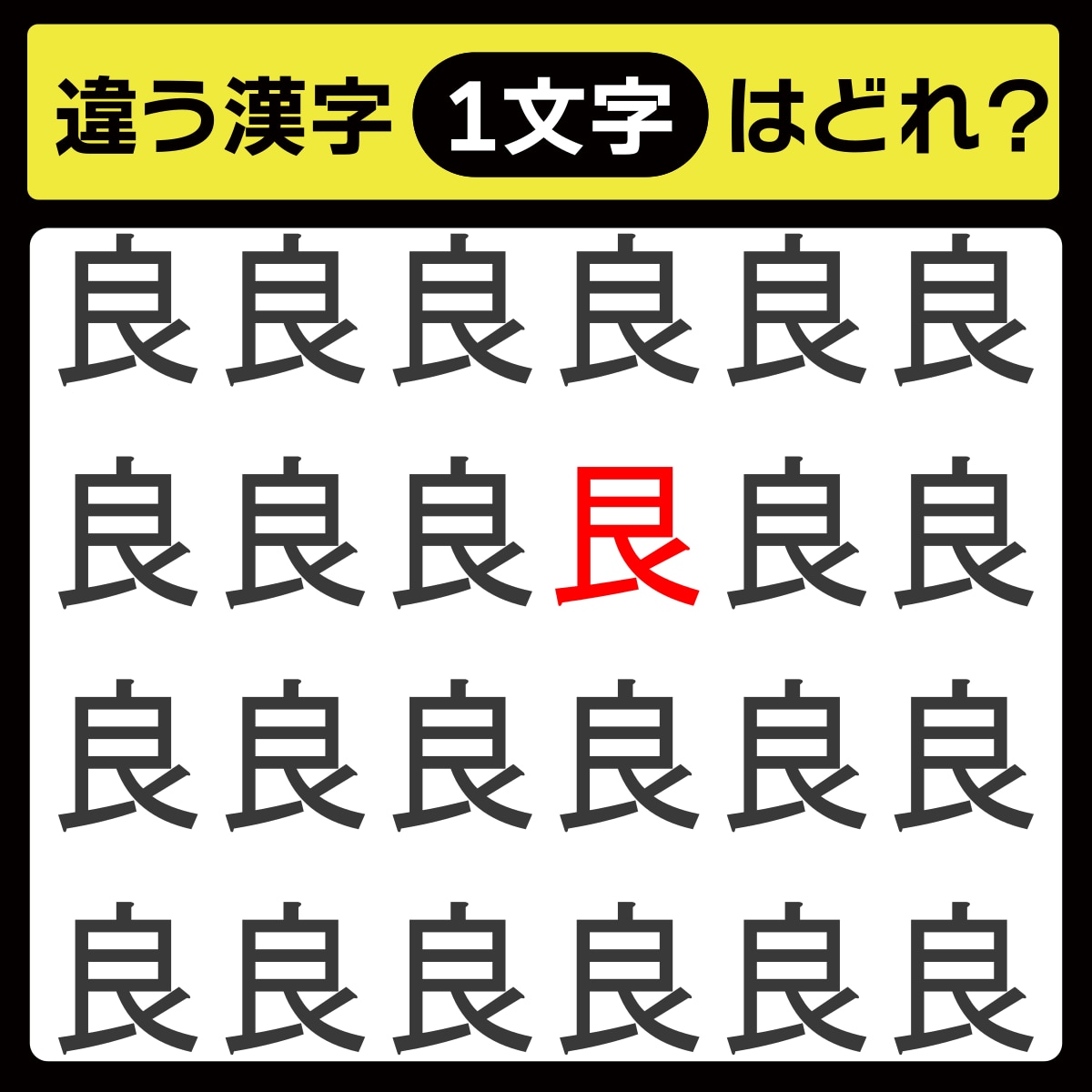 違う漢字は、上から2行目、右から3番目の文字でした!
