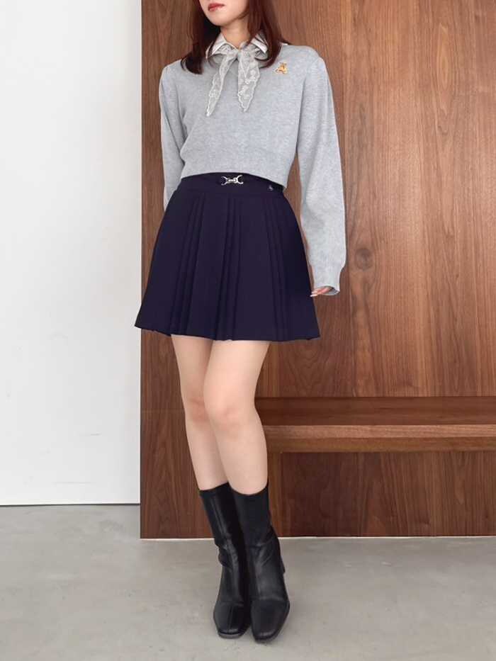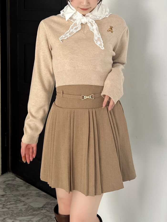 レーススカーフベア刺繍ニットトップス(13,200円税込)は、繊細なレースとベア刺繍が大人かわいい印象に。