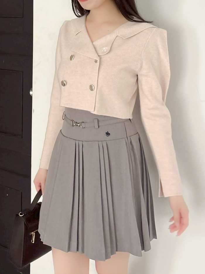 さらに、ベルト付きハイウエストプリーツミニスカート(12,100円税込)は、美しいシルエットでスタイルアップ効果も抜群。