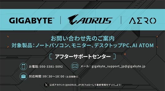 「GIGABYTEアフターサポートセンター」では、これまで個別に対応をしていたGIGABYTEブランドのノートPC、デスクトップPC、AI ATOMのユーザーサポートを一つの窓口に統合し、2025年12月1日からはGIGABYTEブランドの液晶モニターのサポートも統合され、スムーズな問い合わせ、迅速かつ包括的なアフターケアを受けられるようになります。