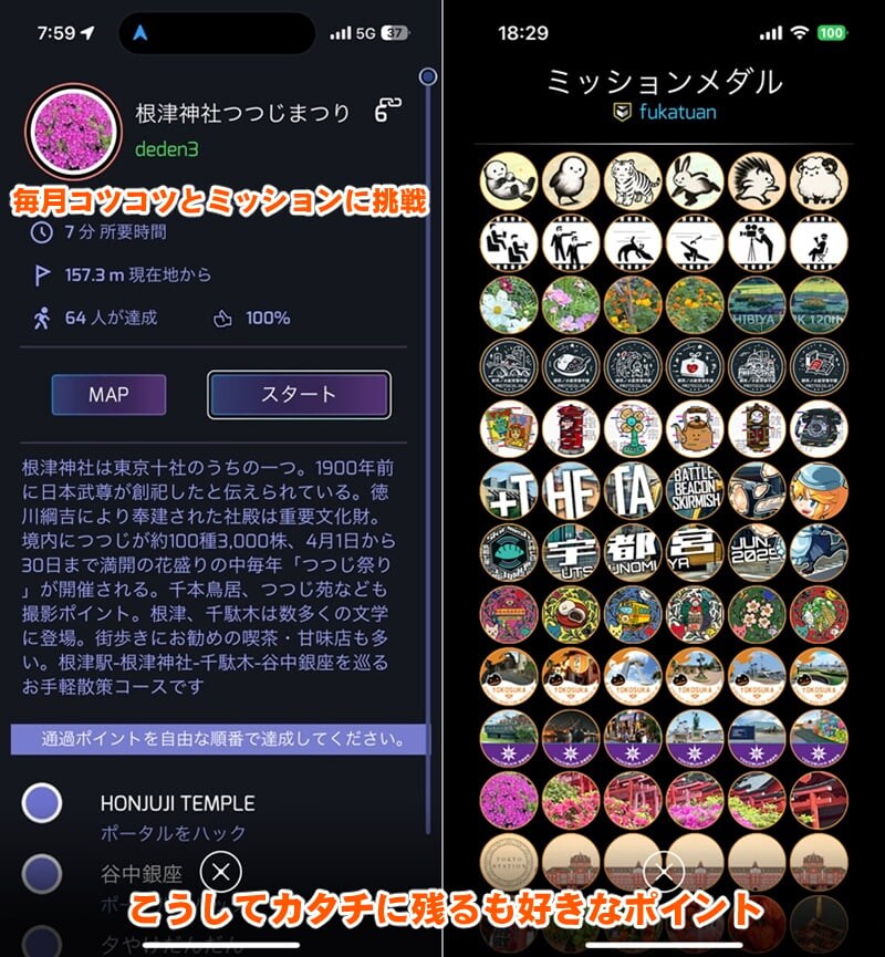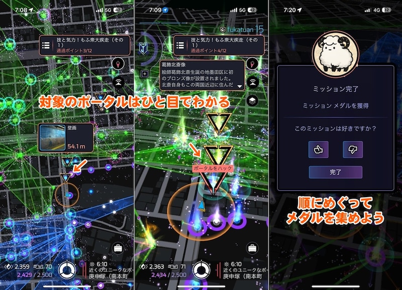 これは設定されたポータルをたどる“ミッション”というスタンプラリーのようなもの。