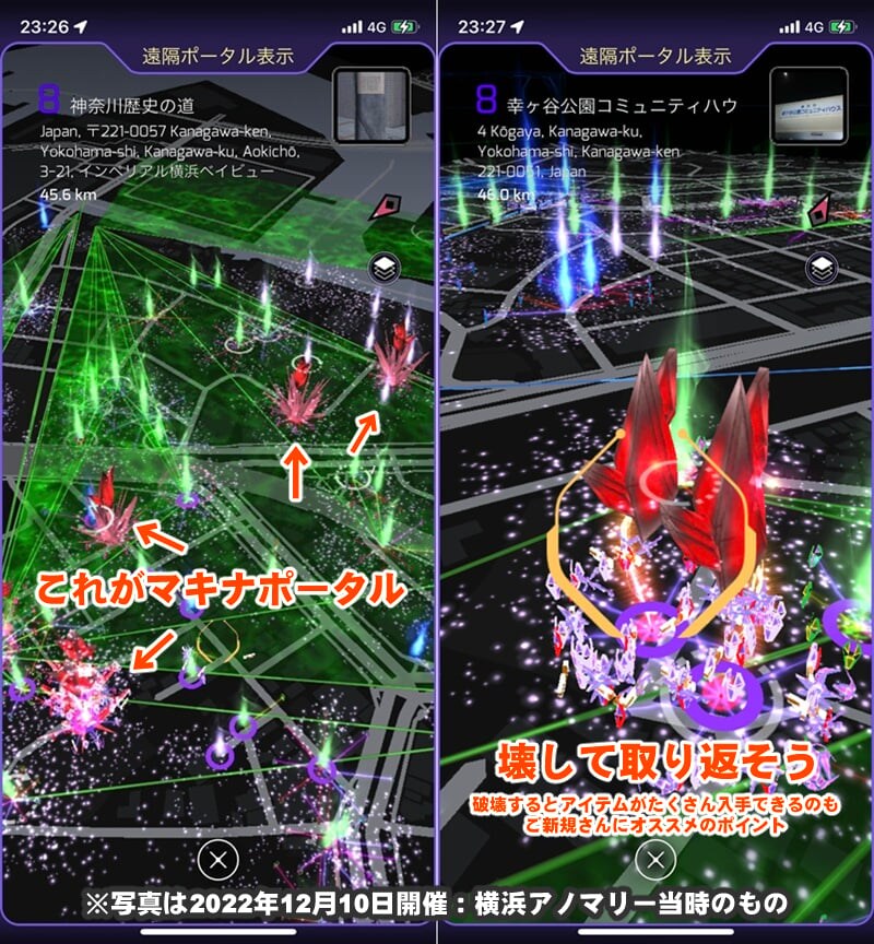 中立の白いポータル状態が続くことで赤いポータルに変化しそれらを結び増殖していくので、プレイヤーの活動頻度が低いエリアなら目にする機会も多い。