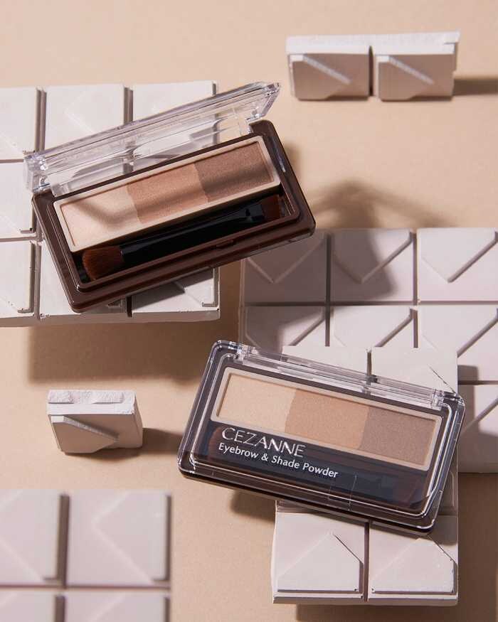 「セザンヌ アイブロウ&シェードパウダー」は、ノーズシャドウにも使える3色入りのアイブロウパレット。淡色・中間色・濃色を重ねるだけで、テクニックいらずで自然な立体眉が完成します。