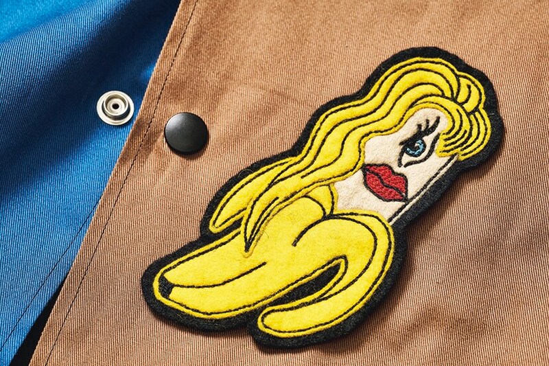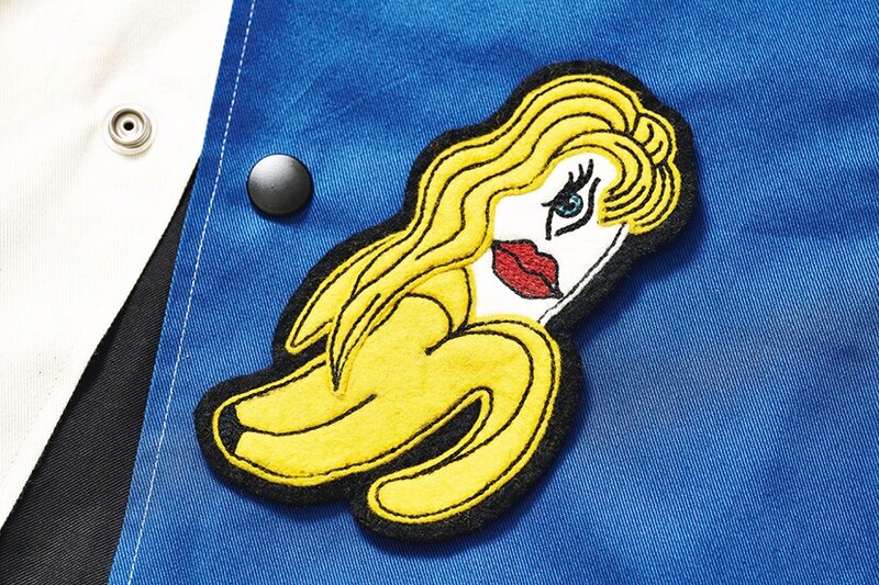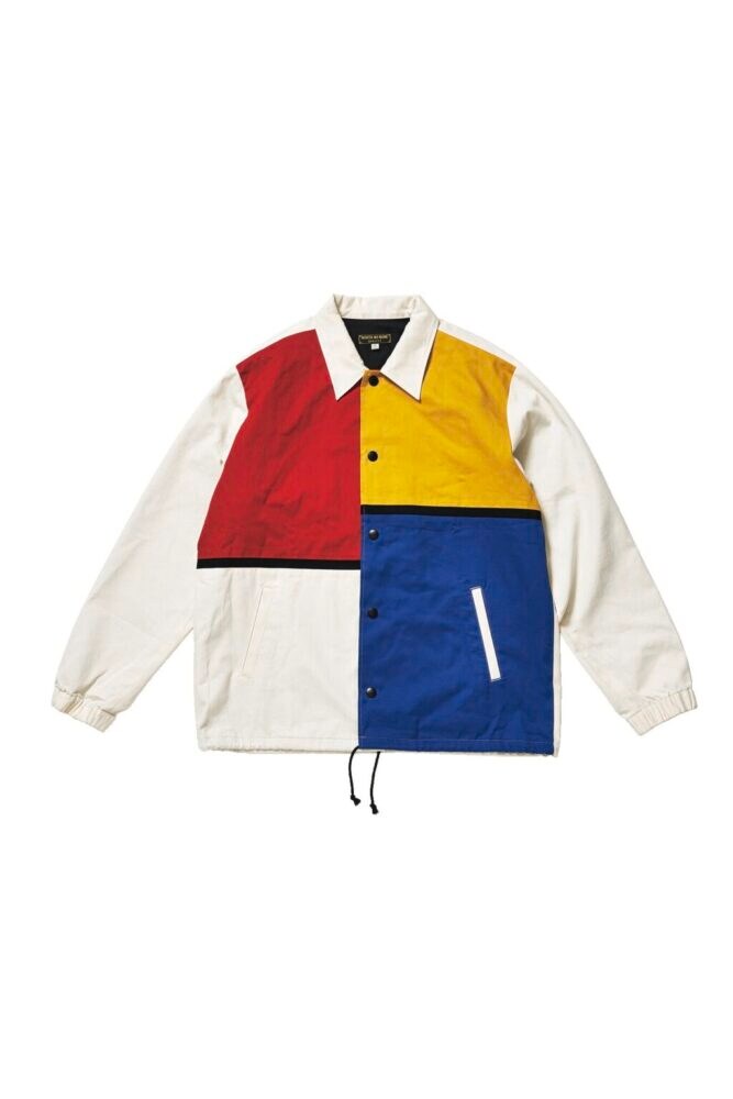 ヴィンテージパッチを当時の手法で再現する人気ブランド『NORTH NO NAME』に別注したコーチJKT。モンドリアン柄のフロントパネルが特徴で、背中にはポップアート バナナズのロゴをパッチでカスタム。女性の顔が付いたバナナパッチがさらに付属する。84,700円