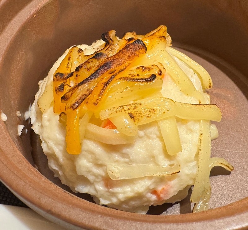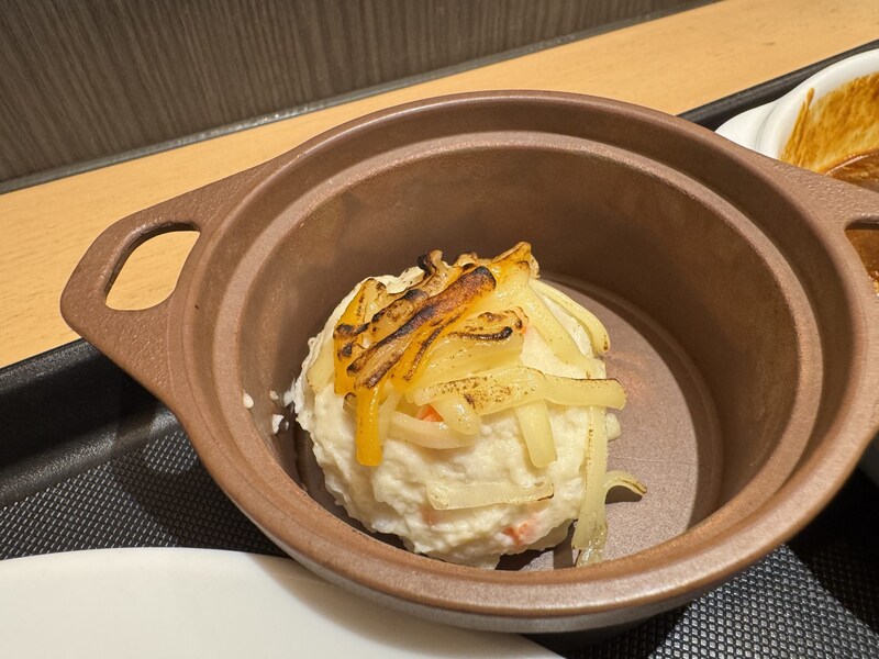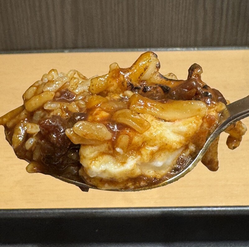 そして、ここからが、オススメの食べ方となります。炙りチーズポテトを有料で追加して、カレーとともに食べるのです。筆者は炙りチーズポテトをライスの皿にのせて、そこにたっぷりとカレーをかけて食べました。
