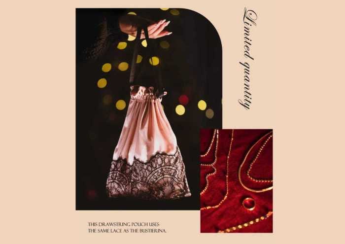 さらに、コフレセット購入者には数量限定で「ビスチェリーナ」とお揃いのレースを使用した巾着をプレゼント。旅行ポーチにも使える上品なデザインで、持っているだけで気分が上がります♡
