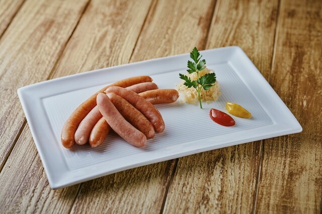 「オリジナルハーブソーセージ盛り合わせ」(1,200円)/パリッとジューシーな食感、肉のうまみとハーブの香りが口の中に広がる6種のソーセージ。