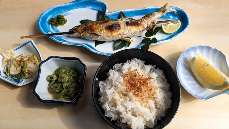 採れたて山菜に鮎の塩焼き!「清水亭」で昼食タイム