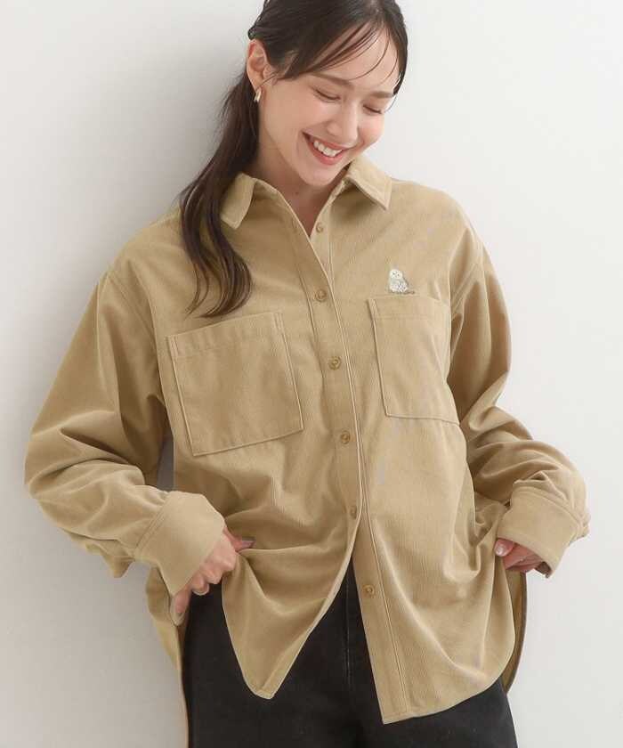 ワンポイント刺繍コーデュロイシャツ