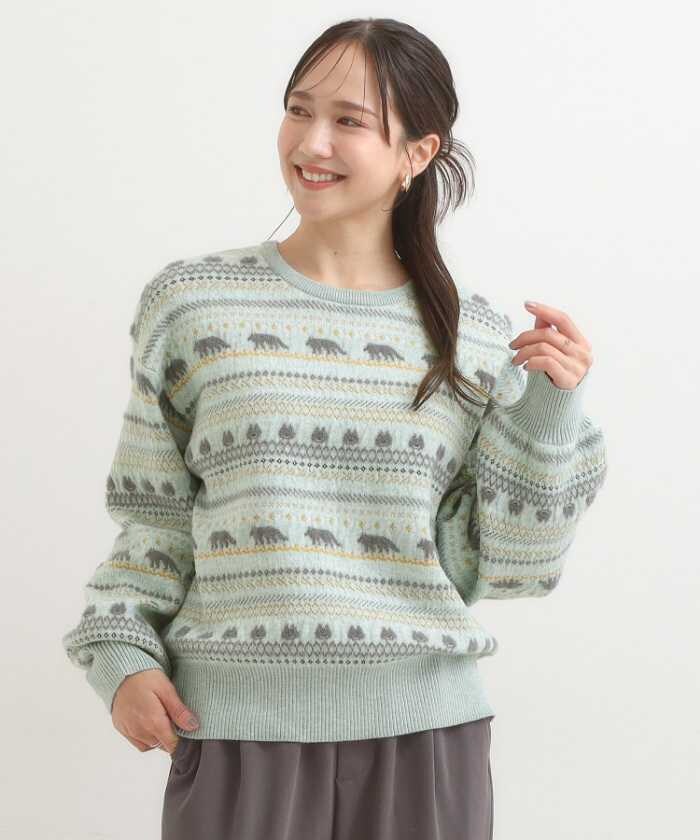 ゆるアニマルふわふわジャカードニット