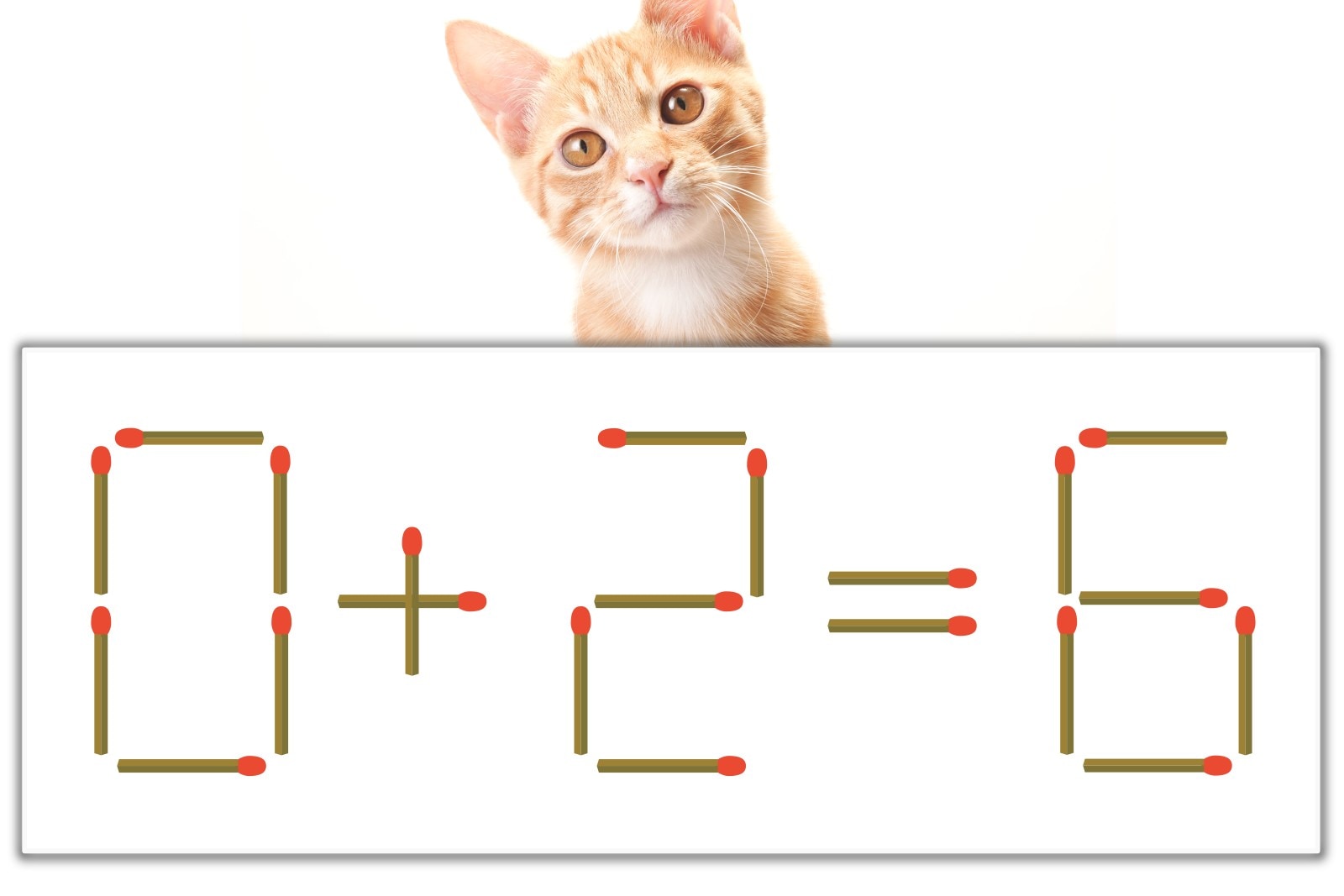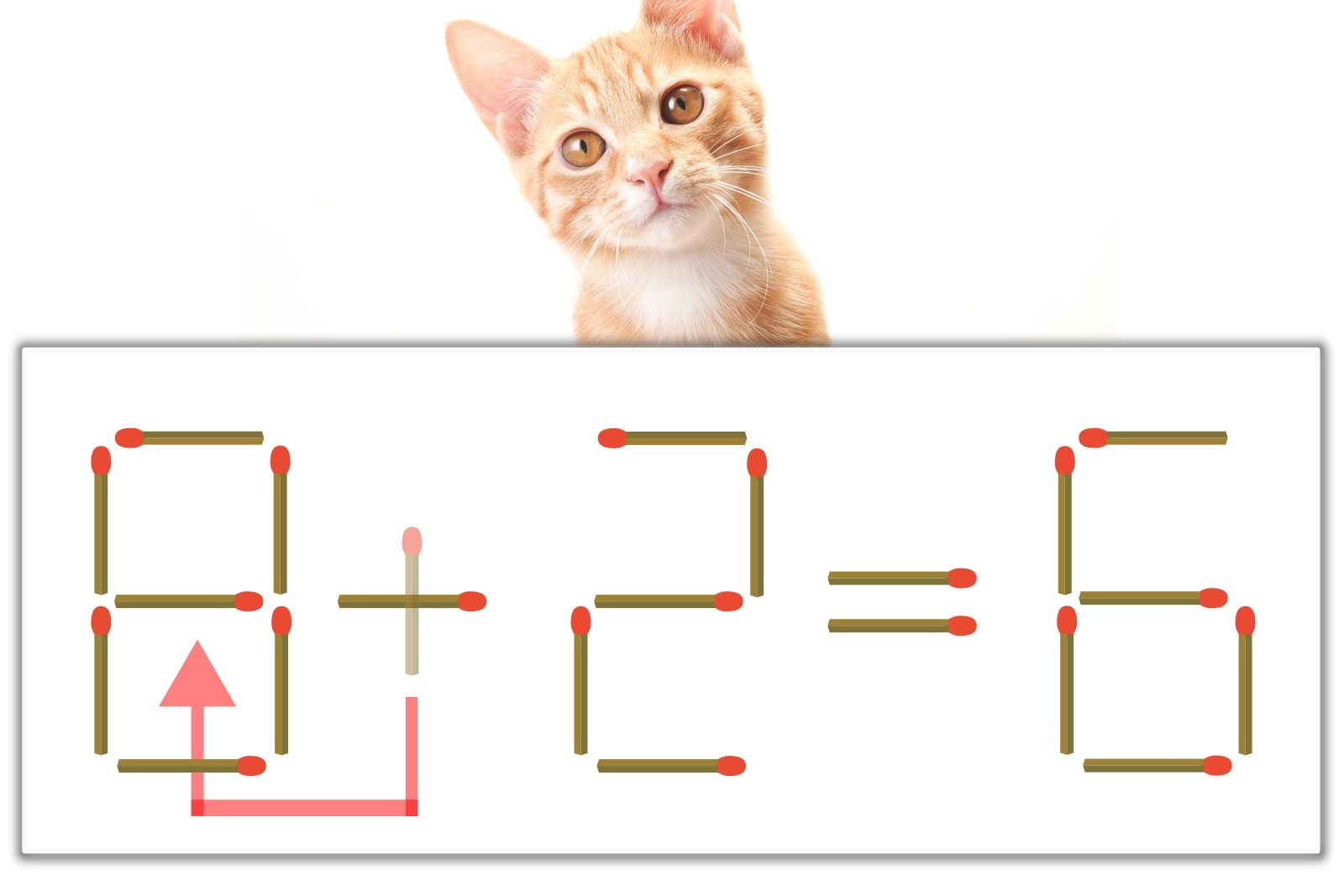 「+」のマッチ棒を1本、左にスライドさせて「8」を作り、「8-2=6」にする。※解答は複数ある場合があります。