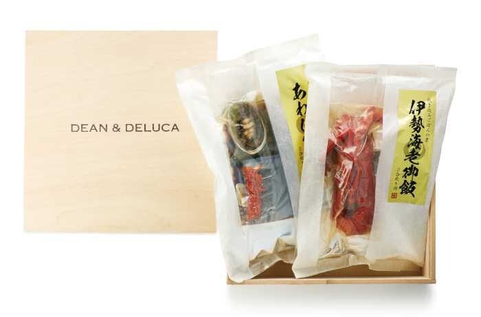 「伊勢海老とあわびの贅沢炊き込みごはんの素」(6,000円/税込6,480円)は、木箱入りの特別仕様。伊勢海老とあわびそれぞれの旨みを堪能できる2種セットです。