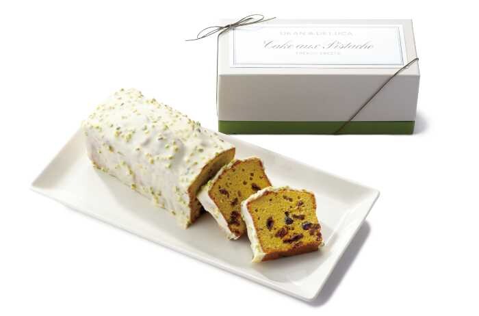 ピスタチオ生地にフルーツを練り込んだ「ケーク・ア・ラ・ピスターシュ」(3,500円/税込3,780円)は、香り高い贅沢なケーキ。