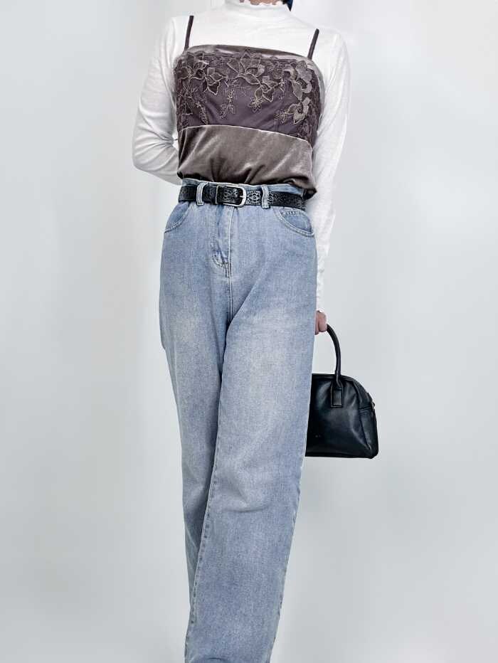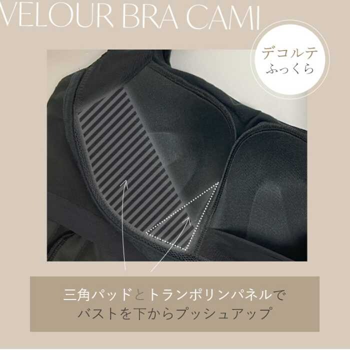 上質なベロア素材を採用した「ブラデリス ベロアブラキャミ」は、なめらかなドレープ性と程よい光沢感が魅力の一着。