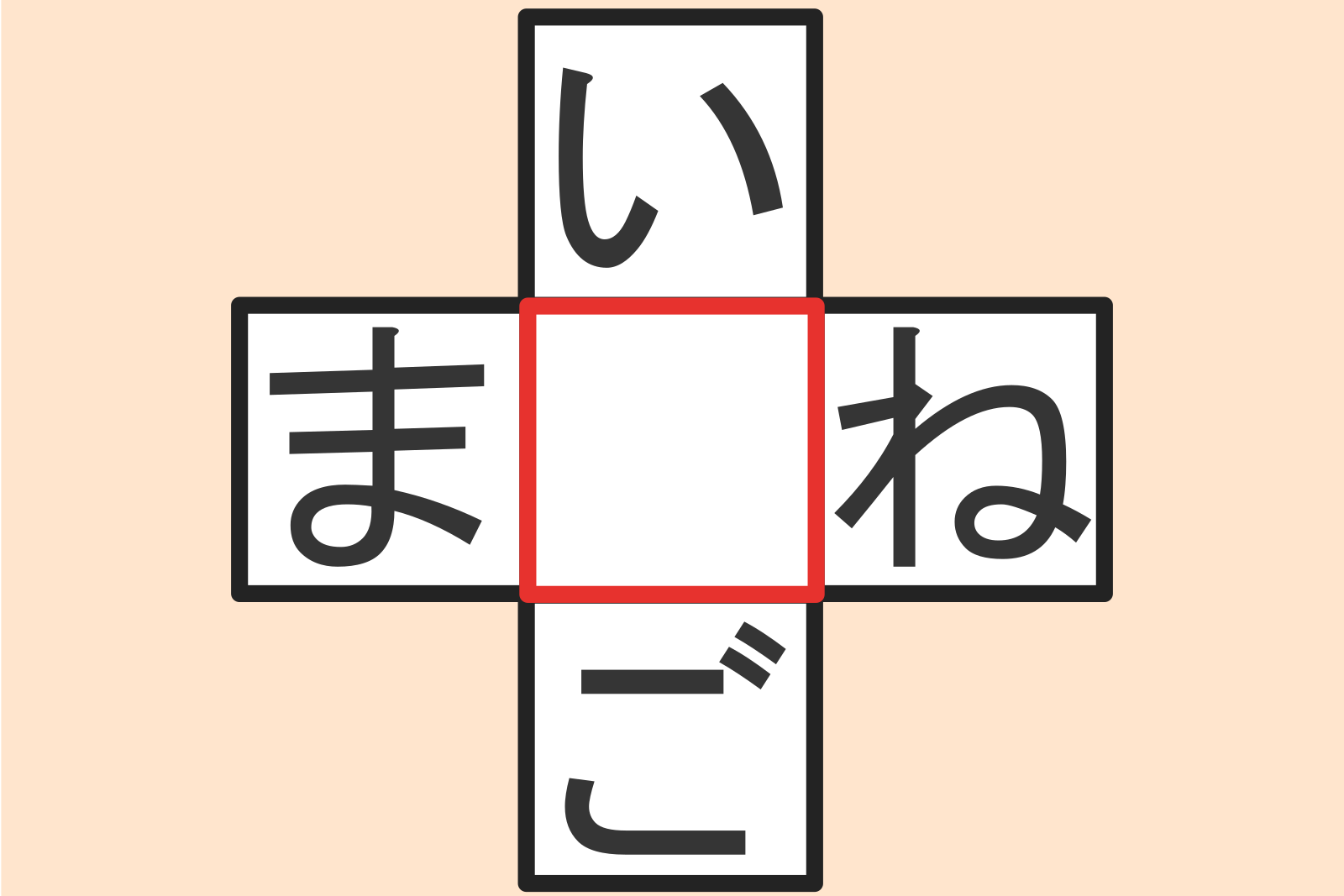 【問題】空欄に入る文字は? 【ヒント】タテ:赤くて甘い果物 ヨコ:昼公演のこと