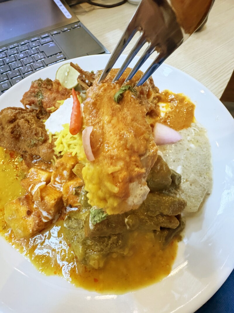 さっそく食べる。……おぉおお! かなり本格的なスパイス重視のテイスト! 辛味というよりスパイスの薫りと独特なテイストで仕上がっている感じです。まさに本格的なスパイスカレーといえるでしょう。