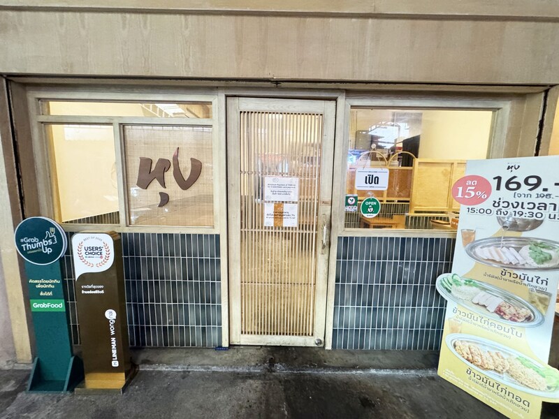 スープをかけるカオマンガイが食べられるお店は「Hoong」(Sathorn Corner, 46 Phiphat 2, Si Lom, Bang Rak, Bangkok)。市場のような、駐車場のような、フードコートのような場所にあるのでわかりにくいので注意です。