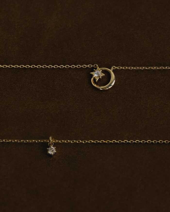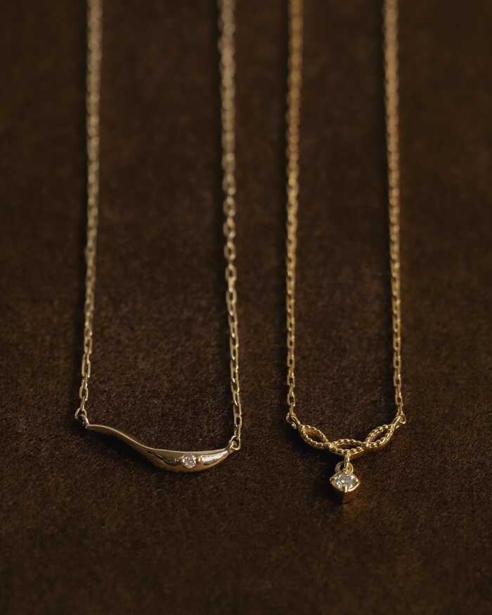 ネックレス 価格:上 38,500円(K18YG/ダイヤモンド)/右 27,500円(K10YG/ダイヤモンド)※2026年1月12日までの期間限定プライス