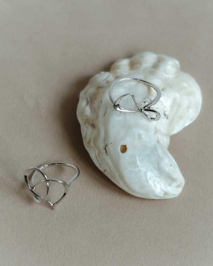 ハート&リボンモチーフのリング(14,300円〜16,500円)は、大人の女性にふさわしい甘すぎない可愛らしさをプラスします。