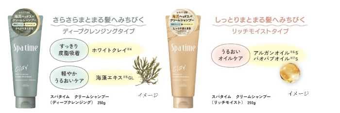 「スパタイム クリームシャンプー」は、2タイプ・4品種で展開。