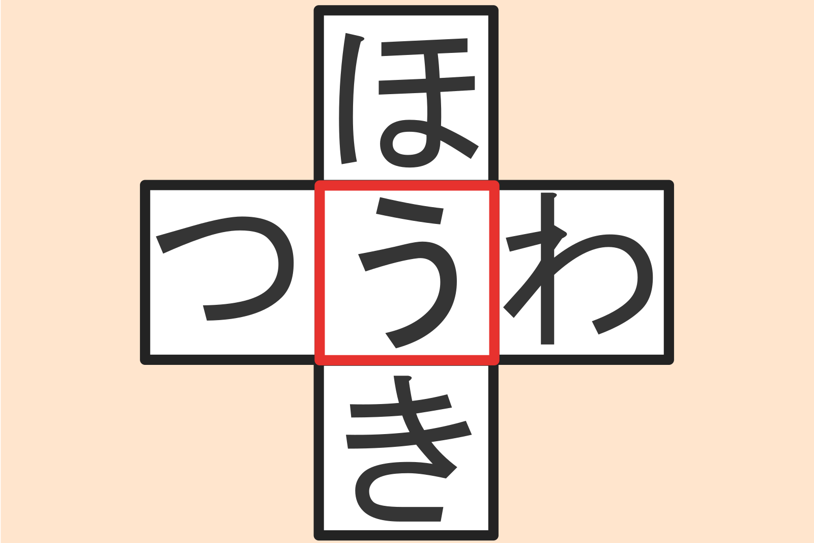 【問題】空欄に入る文字は? 【ヒント】タテ:外を掃除するときに活躍 ヨコ:もしもし~!