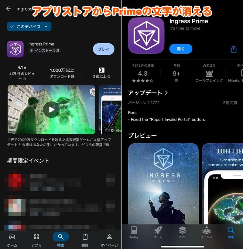 さらに、『Ingress』の新モデルとして2018年にリリースされ現在我々が利用している『Ingress Prime』だが、アプリストアのブランド表示が再び『Ingress』に変更されるようだ。