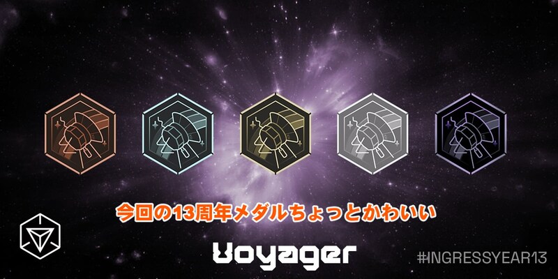 今回、13周年の“Voyager Year 13メダル”はこの1年で1AP以上を獲得したエージェントを対象に各自のレベルに応じたグレードのメダルが付与される。