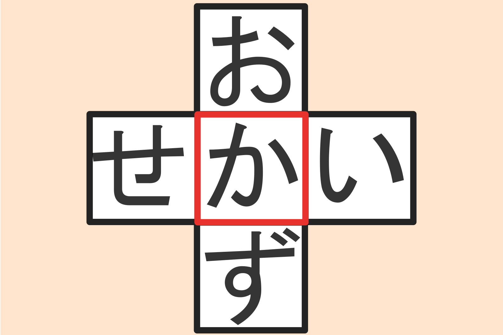 【問題】空欄に入る文字は? 【ヒント】タテ:ご飯のお供 ヨコ:Worldを日本語に訳してみて