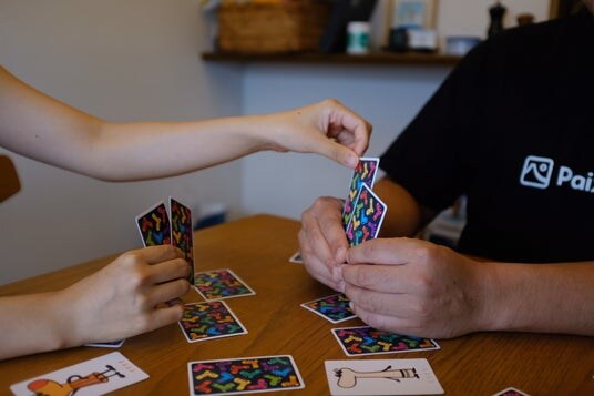 「くつした」のペアをたくさんつくろう!「くつしたカード」をめくったり、他の人の手札を引いたりして、誰よりも多くのペアをつくった人が勝ち。神経衰弱のように記憶力を競いつつ、ババ抜きのクライマックスのようなハラハラ感を何度も味わえます。子どもから大人まで一緒になって楽しめるカードゲームです。