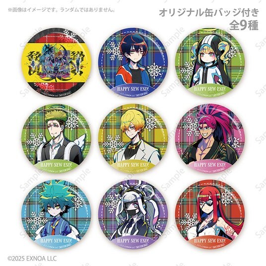 購入特典として、購入いただいたケーキと同じ絵柄の缶バッジが1点付属いたします。