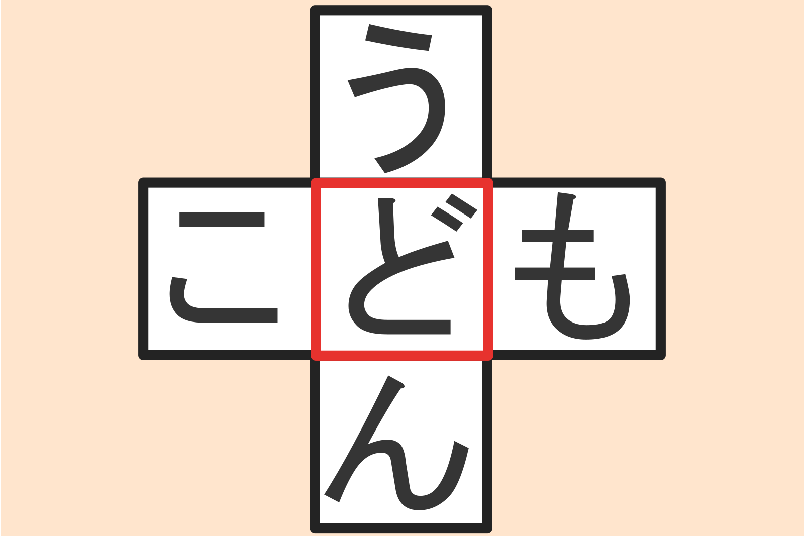 【問題】空欄に入る文字は? 【ヒント】タテ:香川といえば、う○ん。 ヨコ:大人とこ〇も