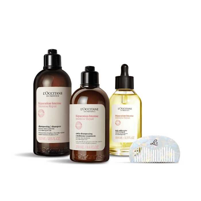 「ホリデー インテンシヴリペア レギュラーデュオプラス」(税込12,760円)は、乾燥ダメージを集中補修するシャンプー・コンディショナー・ヘアオイルの3点セット。