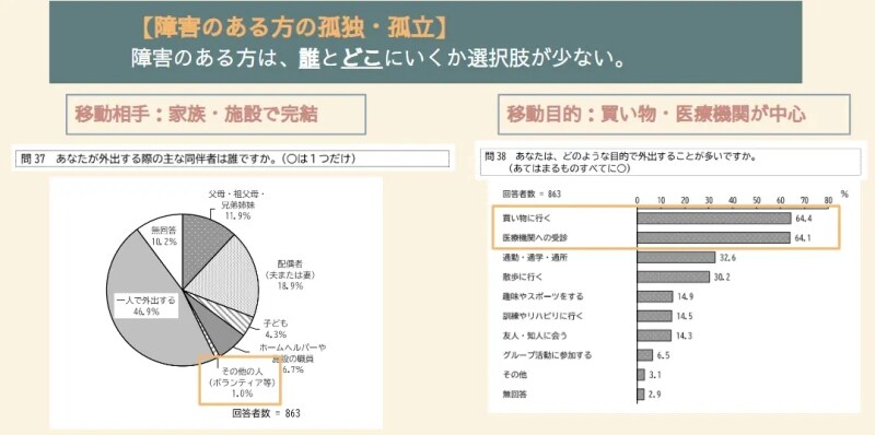 現状では、外出支援の制度が整っていても、行き先が「支援しやすい場所」や「決められた範囲」に偏ってしまうことが少なくありません。本当に行きたい場所を選び、自由に楽しむという経験がしづらい現実があります。