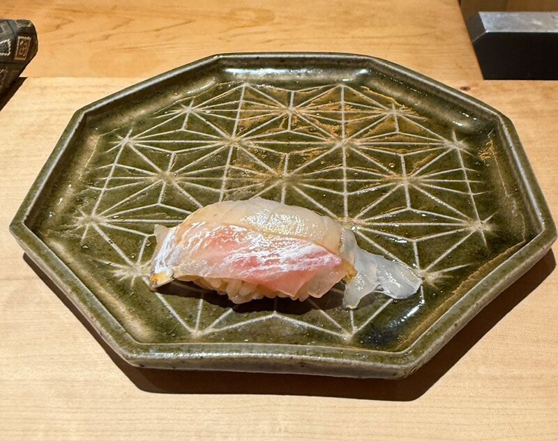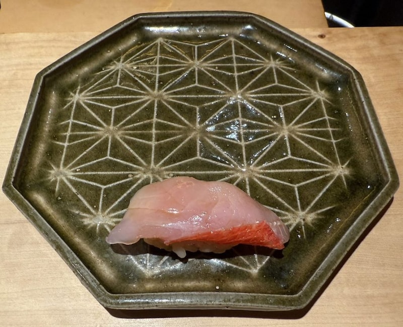 真鯛、イカ、金目鯛と握りが続き、素材のよさをじっくりと味わう。