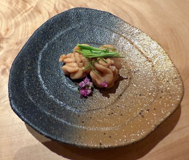 次に登場は真鱈の白子の紹興酒漬け。とろりとした食感に紹興酒の香りで反則級に日本酒が進む。