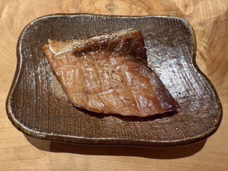 トロたくと甘エビの小鉢、鱧の茶碗蒸し、ブリの幽庵焼きの後に、シマアジとホッキ貝の握りが。お寿司と料理のタイミングも絶妙で、満足度がじわじわと上がり続ける感じ。