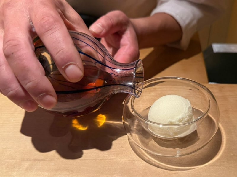 アイスクリームにお酒を注いだデザートで、2時間の贅沢なコースは終了となった。