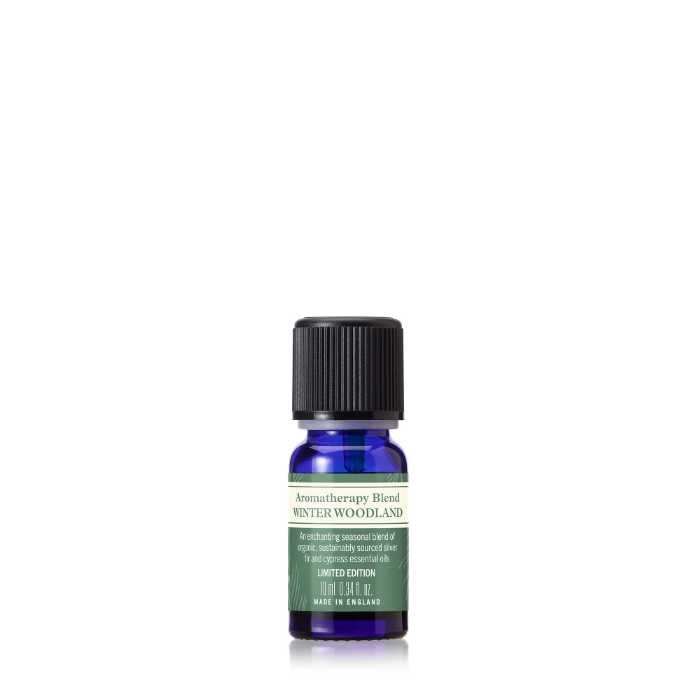 冬の空気にぴったりな限定アロマも登場。「ブレンドエッセンシャルオイル ウィンターウッドランド」(10mL 3,900円/税込4,290円)は、ヨーロッパモミやフランキンセンスをブレンドした清々しい香り。