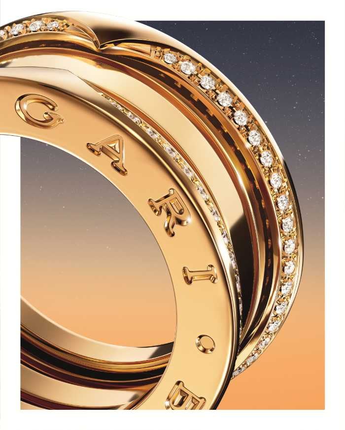 ブルガリを象徴する「セルペンティ」「ディーヴァ ドリーム」「ビー・ゼロワン」などのコレクションが、黄金の光をまとって登場。重ね付けや組み合わせによって無限のスタイルを生み出します。
