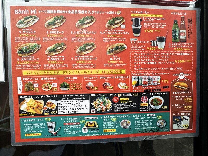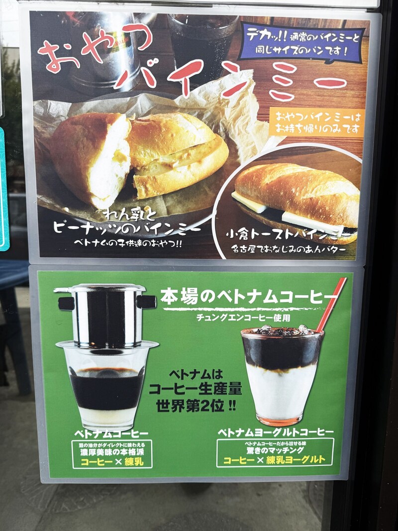 今回は、定番さを残しつつ異国感を強く感じられそうなレモングラスチキンのバインミーをオーダー。パクチーを3倍、6倍、10倍にできるらしい。これ、バインミー好きの気持ちをすごく理解したメニューといえる。そう、バインミー、パクチーこそ正義な部分、ある! しかし今回はベーシックな量でお店の味を体験したかったので増量はやめておいた。同時にベトナムコーヒーもオーダーした。