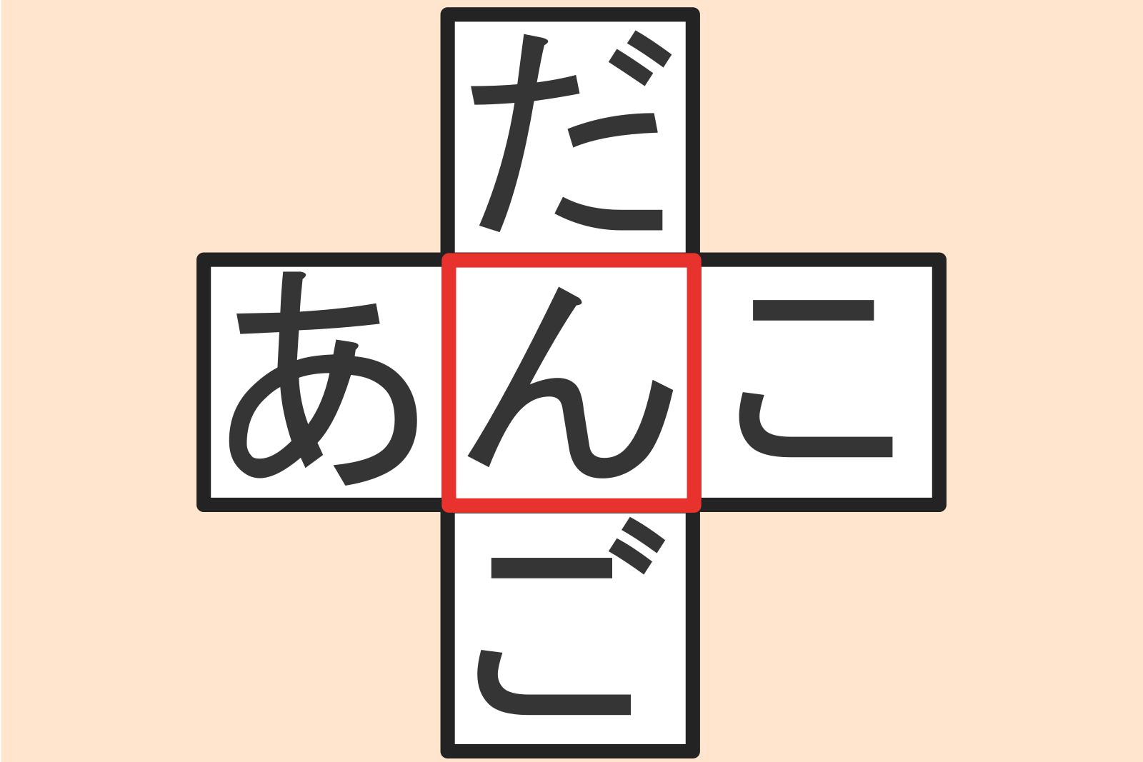 【問題】空欄に入る文字は? 【ヒント】タテ:花より○○〇 ヨコ:あずきを甘く煮たもの