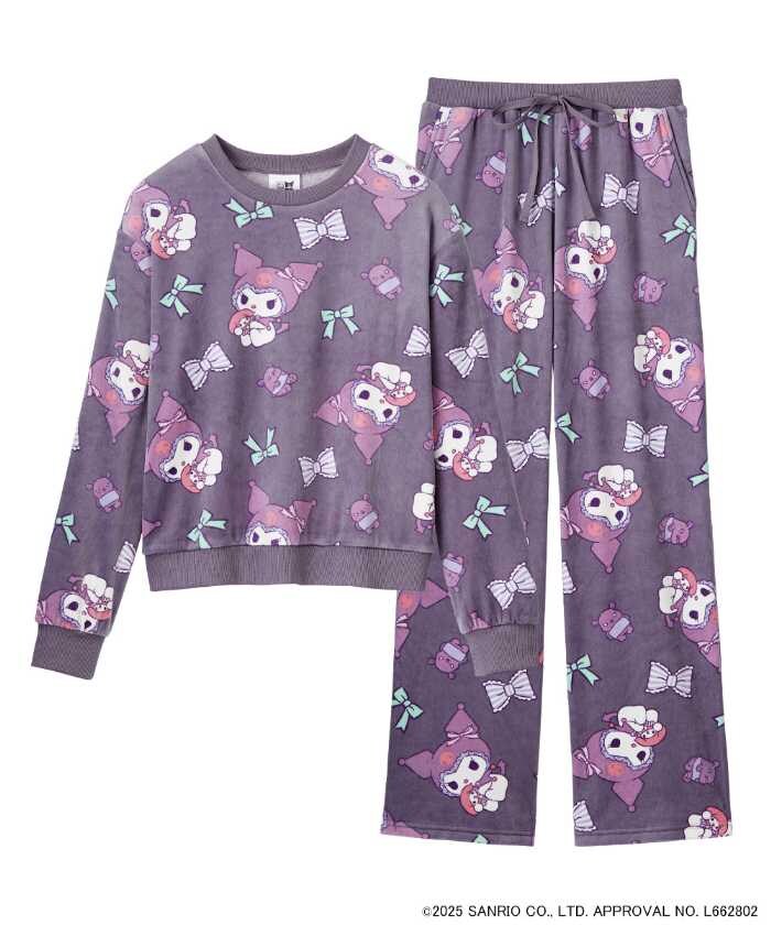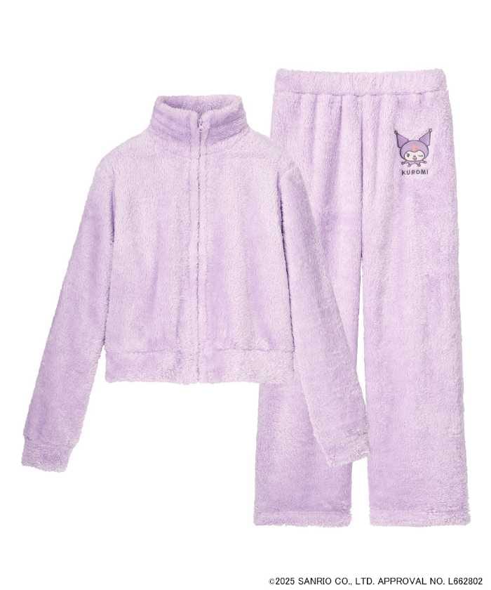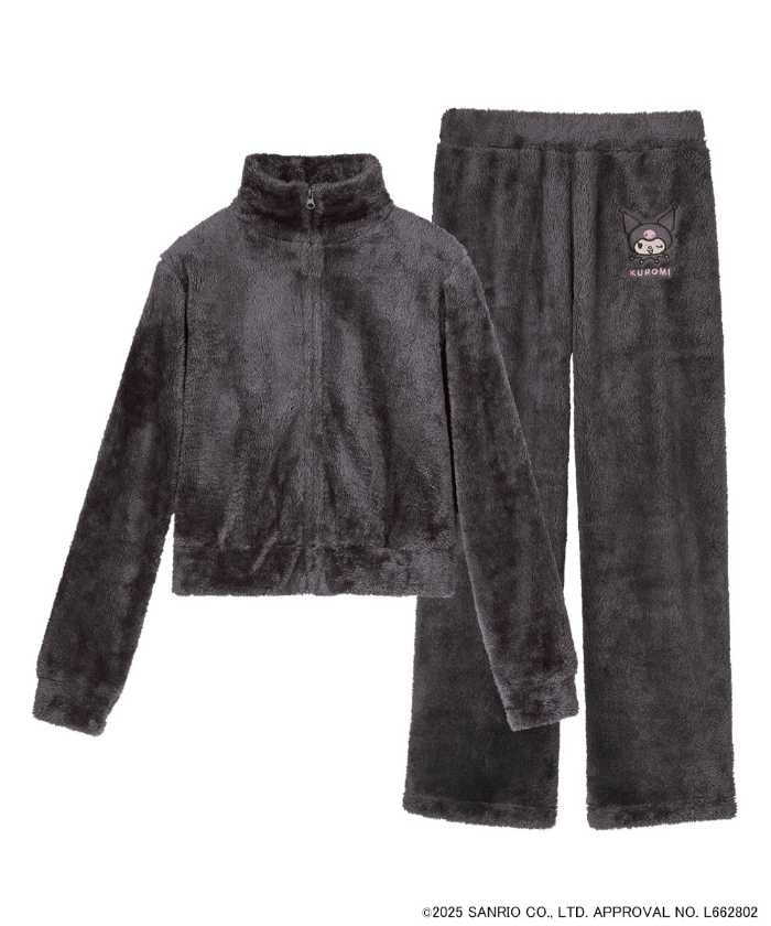冬らしいふわふわの「クロミ フリース上下セット」は、軽くてあたたかいフリース素材を使用。バックには大きなクロミの刺繍が施され、思わず写真を撮りたくなる可愛さです。