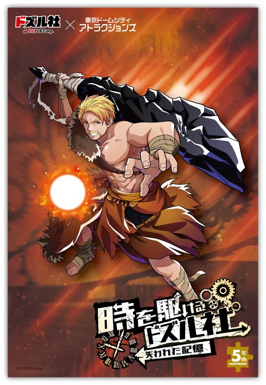 今回、東京ドームシティ アトラクションズでは、ノベルティ付きコラボチケットの販売や園内で楽しめる謎解き、オリジナルボイスを楽しめるコラボアトラクションなどを実施します。暴走した記念装置によって失われた「5周年の記憶」を取り戻すため、メンバーと共に5つの時代を巡るという時間旅行がテーマとなっています。