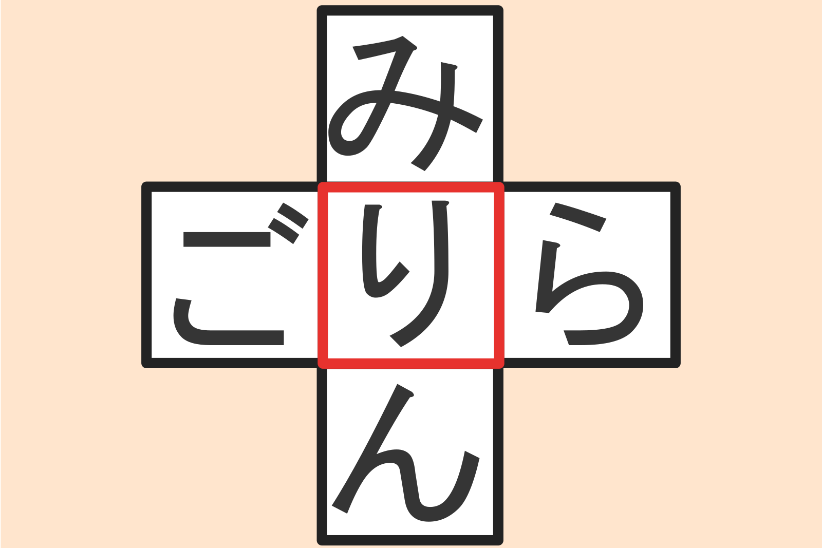 【問題】空欄に入る文字は? 【ヒント】タテ:調味料 ヨコ:バナナが好きな動物