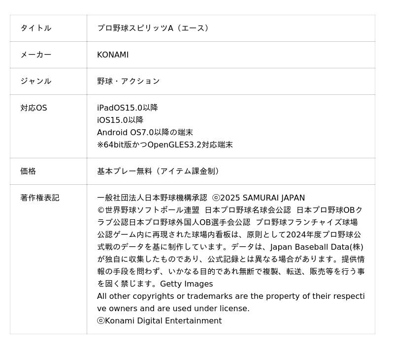 モバイルゲーム『プロ野球スピリッツA』公式サイト:https://www.konami.com/games/prospi_a/