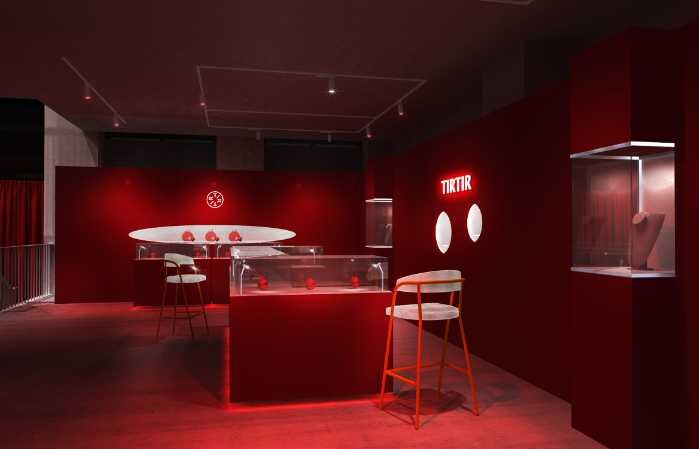 1階には“ルビーの輝き”をテーマにした没入型展示空間が広がり、新商品の世界観をアートのように堪能できます。