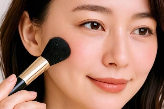 ブラシや指で少しずつ広げながら、境界を曖昧にぼかすことで肌に血色が溶け込み、「どこから色が出ているのか分からない自然なツヤ感」が生まれます。頬の立体感が際立ち、顔全体がパッと明るく見える効果も。