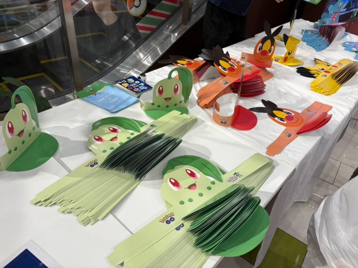 イベント会場では、まず受付でフィールドマップと、ピカチュウ・チコリータ・ポカブ・ワニノコのいずれかのサンバイザーを無料で受け取れる。