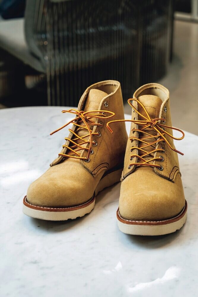 「1995年にインラインになかったブラックのスムースレザーのプレーントゥで、ホワイトソールという組み合わせたのがBEAMS別注の始まりなんです。当時は藤原ヒロシさんの影響もあって、このコンビネーションが飛ぶように売れたんです。そこから数年毎にRED WINGの別注をやっています。ブラックやネイビーのスウェードを用いた別注も反響がありましたね。BEAMS40周年の半円犬タグもすごかった。そう考えると、RED WINGさんには助けられています(笑)」